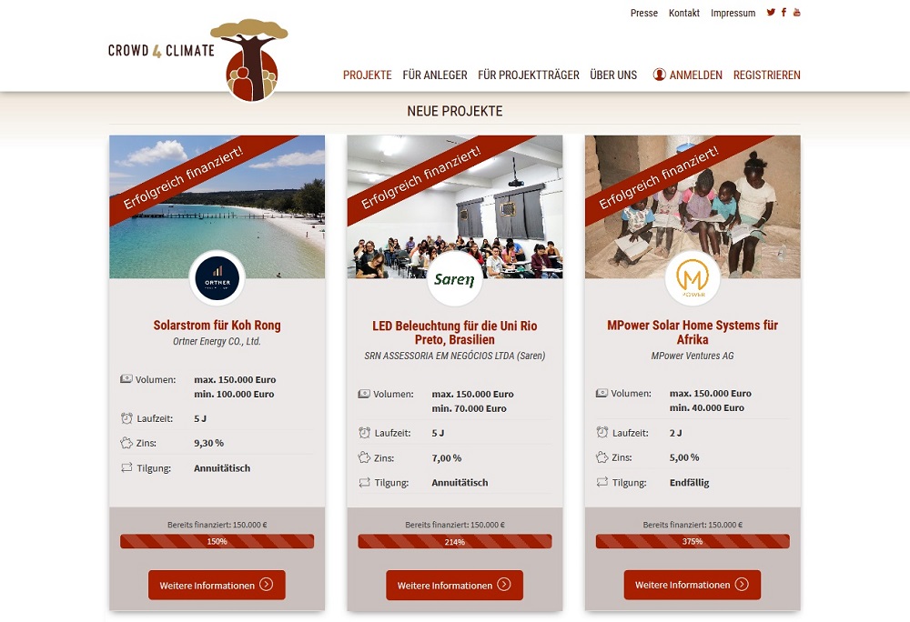 Crowdinvesting platform for CO2 mitigation and adaption projects in developing countries